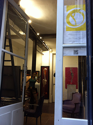 The following series deliberately seem to move towards an ellipsis of lines to give greater importance to the meaning without giving any keys to the reading. Her works stand on the borders of representational and abstract. The ellipsis of lines is allowed by various techniques (tearing, collage…) using paper and other materials (pigments…) As the artist puts it, it is a way to hush up things, for what is to be depicted partakes of the obvious. The language becomes simpler even if its decoding is not necessarily so, the paintings presenting different layers of interpretation. After a series devoted to the feminine figure with “ îles “(“iles” in English) at the beginning of 1999 and to its masculine counterpart “ îls ” (an alteration of “ ils ” which means “ they ” in English and used when the gender is masculine), she understood an intermediary work on infancy (the ultimate stage of her introspection) between 1999 and 2000 before going on with her work on the body from 2000 to 2001 with series such as “ Jean-Louis ” (a French Christian name), “ Variations Dominique ” (“ Variations about Dominique “ being a French name) and finally “ Suite sur lui ” (“ Suite about him ”). In 2001, Marie-Christine Palombit cast a new light (new energy) on her work with the “ lumières intérieures ”(“ inner lights ”) series which foreshadowed the 2002 and 2003 trend towards bodies on the move with the “ l’homme qui marche ” (“ the walking man ”) series and towards choreographed, radiant, sylphlike bodies on the borders of psychedelic (the “ koregrafi ” series). The body is staged, revealed, bare, it throbs, implodes, is delivered, its legs wide apart…. The artiste seems freed of her demons, not of her obsessions. In 2004 and 2005, she presented us with “ les rouges ” (“ reds ”), a series of representations very close to “ the origin of the world ”, after with “ indigos ” in 2006, procreation, the female womb, her womb, organic life, cellular matter. Almost dissected, in pieces, sequence shots after sequence shots, the body is fingered, torn to bits, split, X-rayed. It is both the container and the contents. It becomes living matter, red, bloody, so human, it is a symbol. The result is almost a product of rough art, it is a return to origins, a rebirth, a life compound.