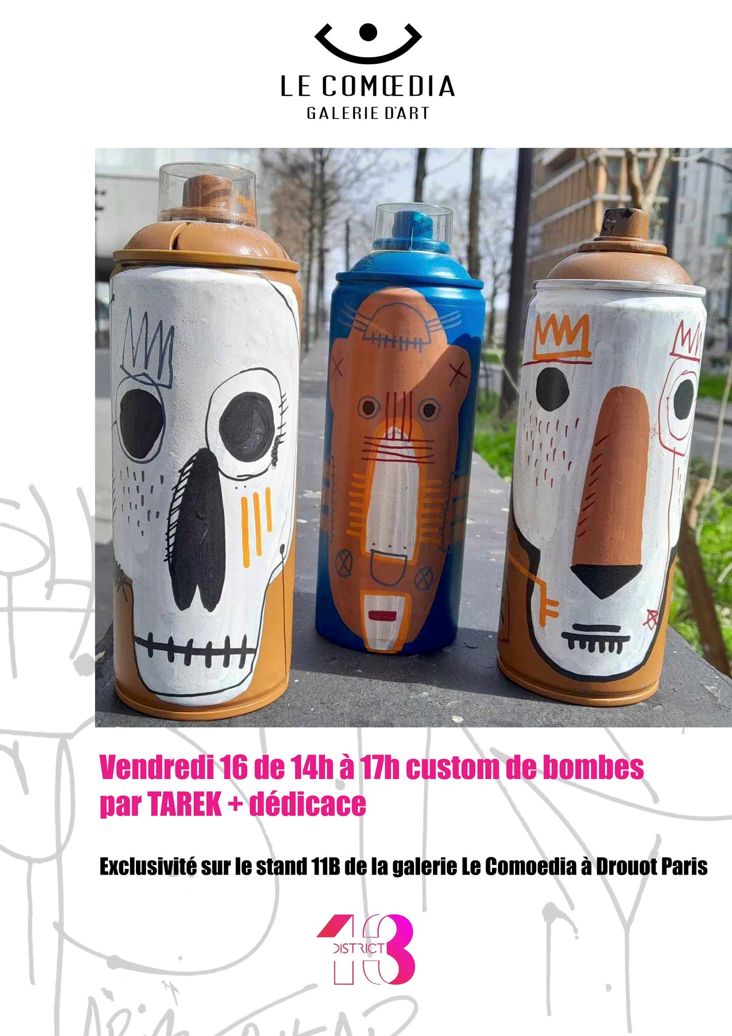 Du 15 au 18 janvier District 13 art fair des œuvres de TAREK en exclusivité sur le stand 11B de la galerie Le Comoedia Hôtel Drouot à Paris.